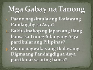Touch device users explore by touch or with swipe gestures. World War II sa Asya 1. World War I o pinaikling WWI ay isang pandaigdigang digmaang naganap mula 1914 hanggang 1918 na kinasangkutan ng mga makapangyarihang bansa sa mundo na noon ay napapangkat sa dalawang magkalabang alyansa.